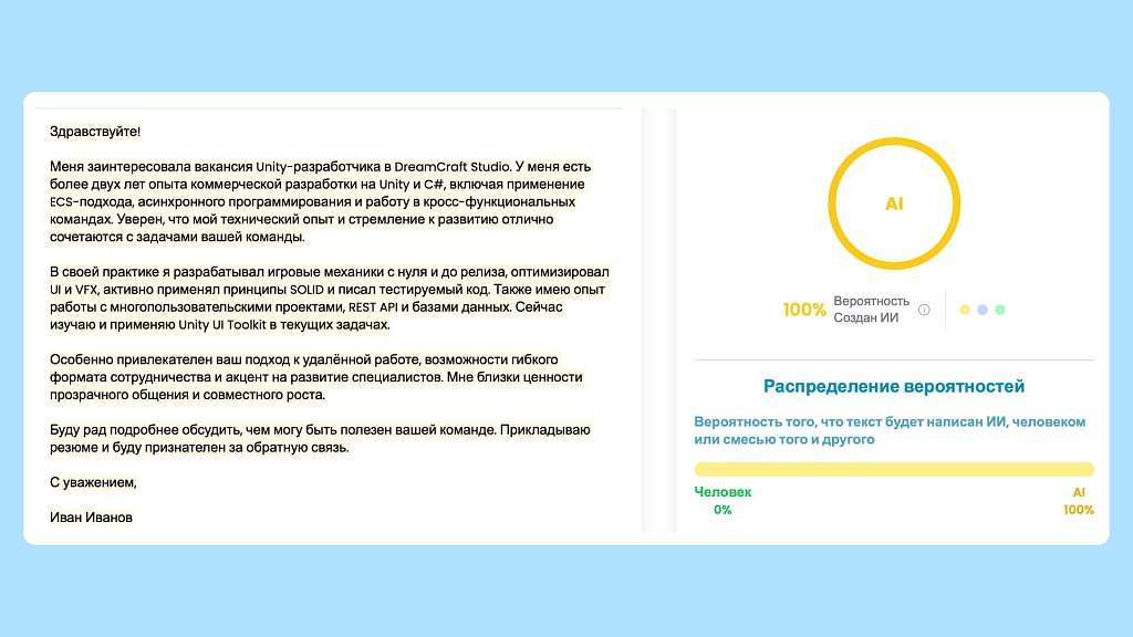 HR начинают использовать AI-детекторы. Такие «идеальные» письма легко выявляются