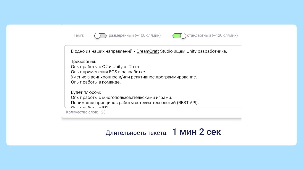 Чтение вакансии занимает не так много времени — около минуты