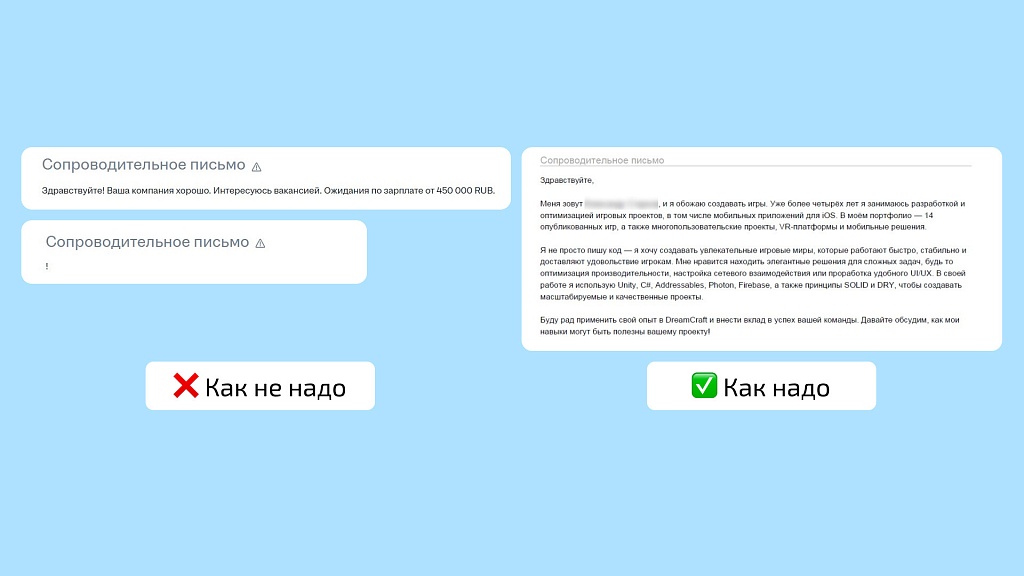 Сопроводительное письмо — база качественного отклика. Это небольшой текст, который отправляется вместе с резюме.