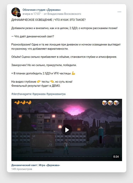 А вот пример не очень удачной коммуникации — паблик во ВКонтакте об игре и студии одновременно.