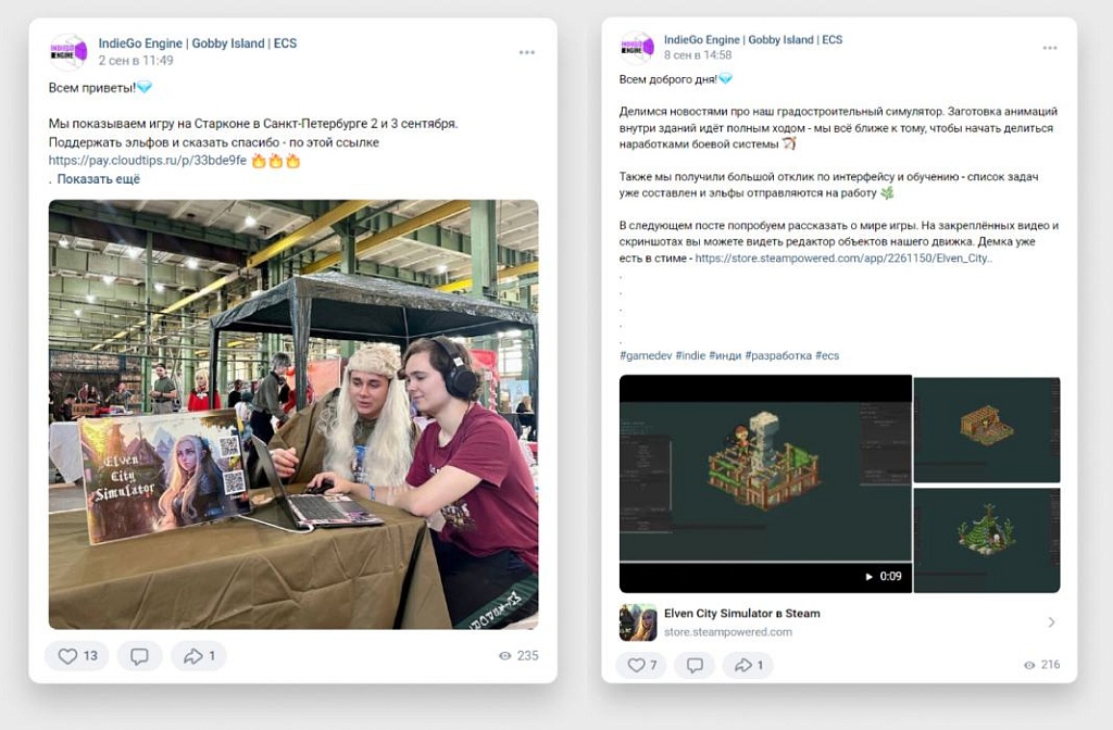 Здесь создатели не просто показывают стадии разработки, но и делятся событиями, чтобы желающие могли прийти и познакомиться с игрой