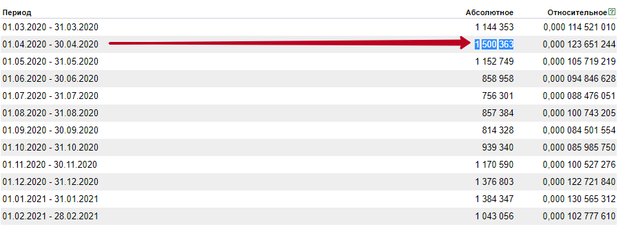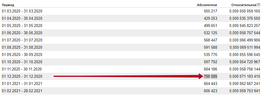 Этот спрос может возрасти, если производитель запустит хорошую рекламную кампанию, или упасть, если реклама остановится. Поэтому, при формировании семантического ядра, важно смотреть на сезон — в каком месяце люди покупают не только этот конкретный смартфон, но и смартфоны в целом. В тематике смартфонов мы видим, что люди активнее всего покупают их в декабре (вероятно, в преддверии нового года):