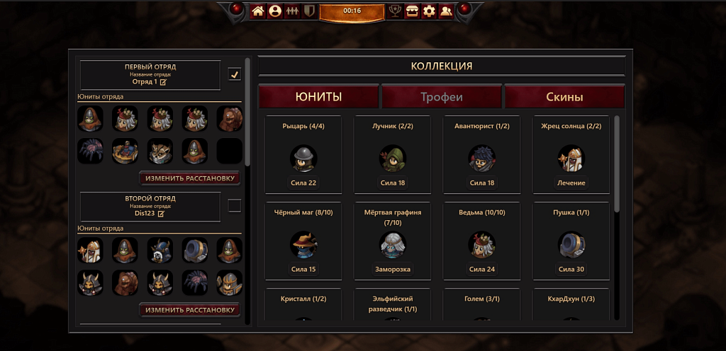 Новый игрок может изменить стартовый отряд или базовую расстановку.